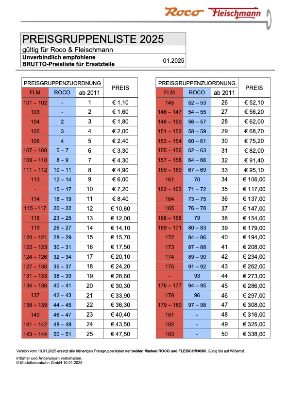 Preise Roco/Fleischmann: